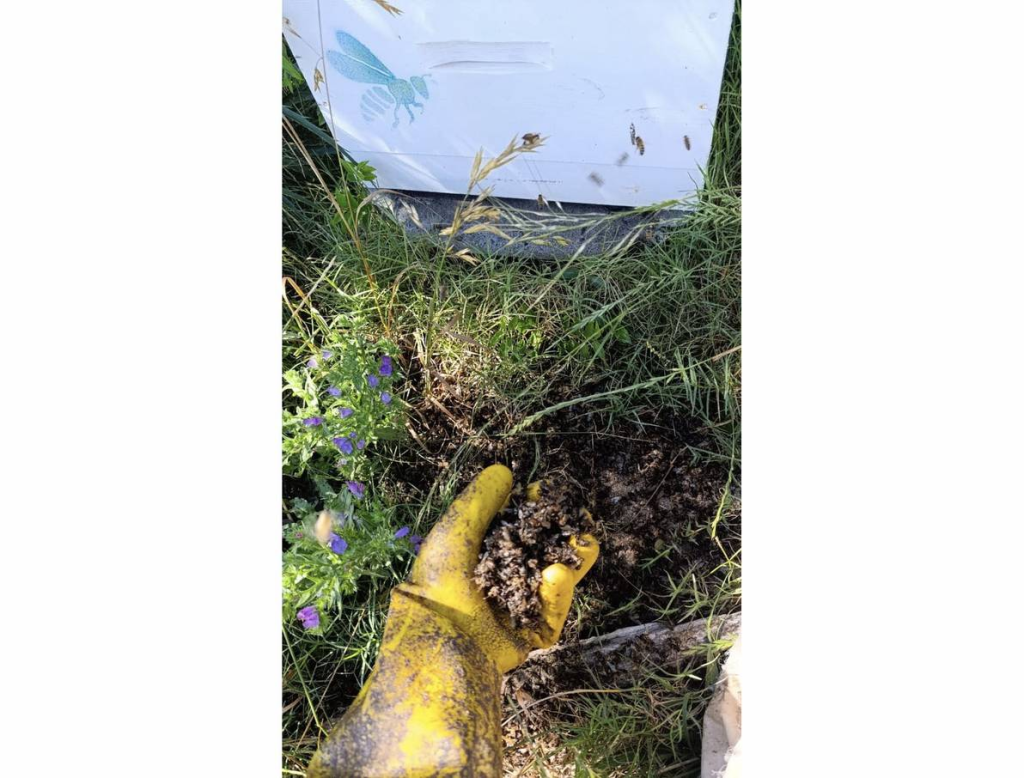Primera imagen: cientos de abejas muertas apiladas en una bolsa. Segunda imagen: una mano toma los cadáveres de los polinizadores, que reposan al costado de un apiario. Estos dos momentos ilustran la mortandad de abejas que, según los últimos reportes, ha afectado a más de 13.700 colmenas en nuestro país. Las imágenes fotográficas las tomó Estela Santos, científica que ha dedicado su vida al estudio de los polinizadores y que también es apicultora. Fueron utilizadas para retratar un comunicado firmado por más de 20 investigadoras e investigadores que integran el Instituto de Investigaciones Biológicas Clemente Estable, el Instituto de Investigaciones Una Salud, las facultades de Química, Agronomía, Ciencias y Veterinaria de la Universidad de la República, el Centro Universitario Regional Este, el Centro Universitario Regional Litoral Norte y la Universidad Tecnológica.