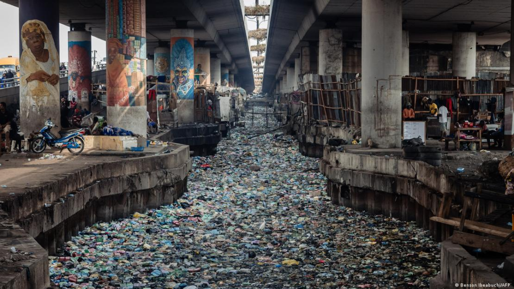 En julio de 2025, se prohibieron los plásticos de un solo uso en Lagos, la ciudad más poblada de Nigeria. Sin embargo, los residentes afirman que la falta de control y la escasez de alternativas han hecho que la prohibición sea ineficaz (foto de archivo de enero de 2024) .Imagen: Benson Ibeabuchi/AFP
