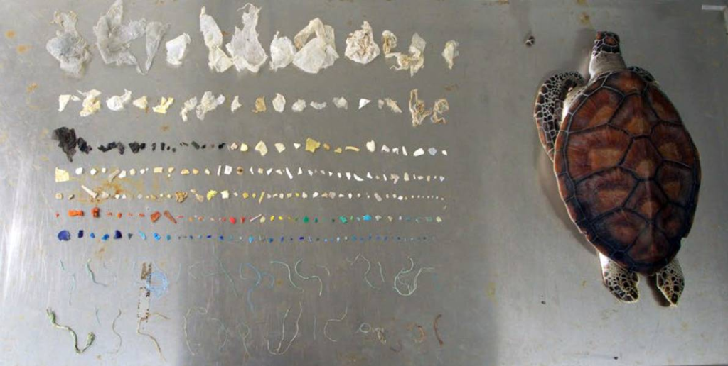 Plásticos encontrados en necropsis de tortuga verde. Foto: Daniel González Paredes
