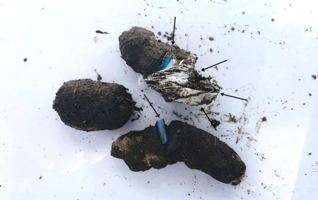 Plásticos en excremento de tortuga. Foto: Daniel González Paredes