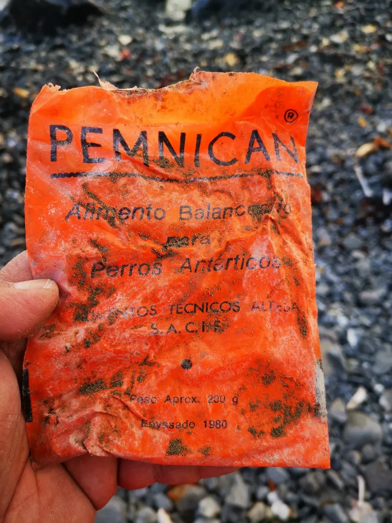 En el trabajo dicen que esa crianza de perros se terminó por disposiciones del Tratado Antártico. En las bolsas puede leerse perfectamente que la comida fue envasada en 1980. “Probablemente se utilizaron hasta febrero de 1993, cuando los últimos 13 perros polares argentinos abandonaron la Antártida siguiendo la recomendación del Comité Científico de Investigaciones Antárticas en virtud del Protocolo de Madrid”, dice el artículo. “Esa fue información que buscamos para redondear el hecho de que esas bolsas están ahí desde hace un montón de tiempo. Si ya no había perros, no tenía sentido que siguieran llevando esa comida, así que esa era la fecha más tardía, por más que el paquete dijera que estaba envasado en 1980”, dice Juan Pablo.