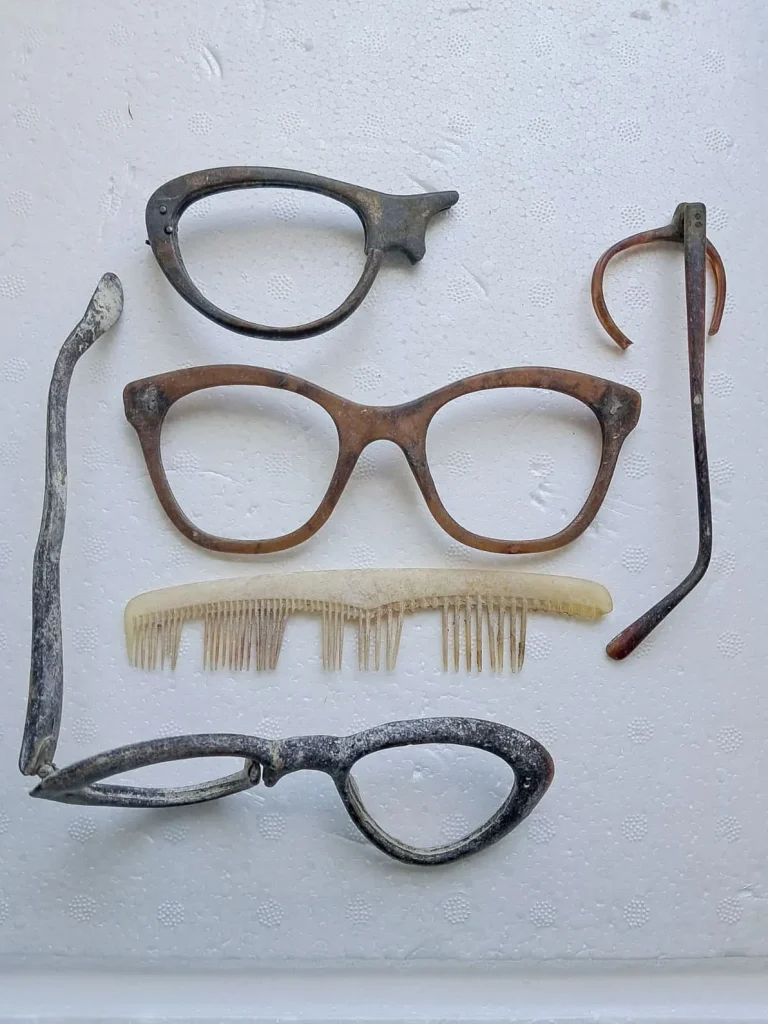 Lentes y peine encontrados en Bahía Esperanza. Foto: Juan Pablo Lozoya